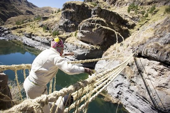 - สะพานถักนี้มีชื่อว่า Qeswachaka ตั้งอยู่ไปทางตอนใต้ของ Cuzco ประเทศชิลี ประประมาณ 100 กิโลเมตร