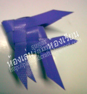 ทำ "ปลาตะเพียนชั้นเดียว" ไปแล้ว ใครที่ยังไม่ตัดชายที่เหลือ ก็เอามาสานชั้นที่สองต่อได้เลยจ้ะ