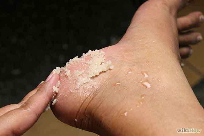 นำน้ำตาลทรายขาว และน้ำมันที่เตรียมไว้ ผสมเข้าด้วยกันค่ะ เราจะรู้สึกได้ว่า มันเข้ากันทุกส่วนล่ะ ก็เอามาขัดตรงบริเวณที่เกิดปัญหา ส้นเท้าแตก สัก 10 – 15 นาที แล้วล้างออก ใช้เป็นประจำ สัปดาห์ละ 2 – 3 ครั้งค่ะ