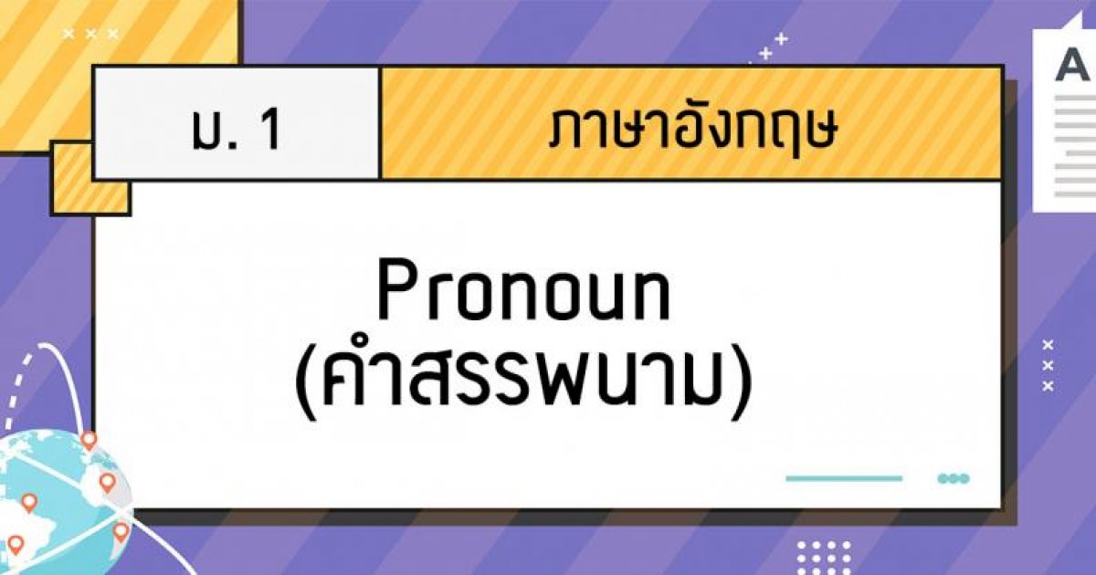 Pronoun คือ คำสรรพนาม เป็นคำที่ใช้เรียกแทนคำนาม เพื่อเป็นการเลี่ยงใช้คำนามเดิมซ้ำ ๆ อันได้แก่ คน สัตว์ สิ่งของ สถานที่ แบ่งเป็น 5 ประเภทดังนี้
